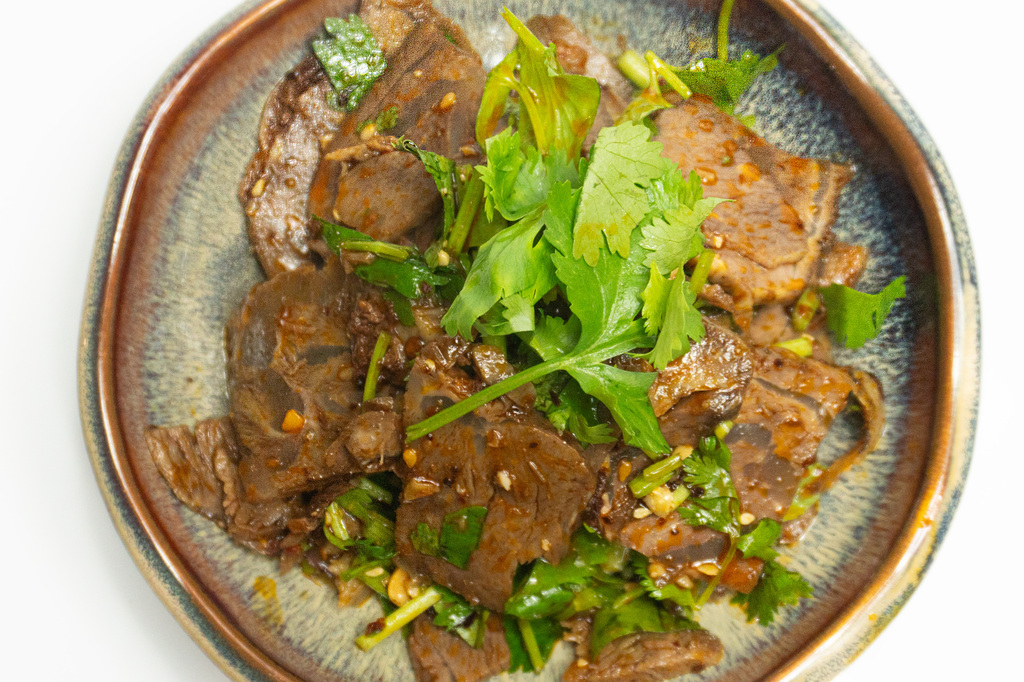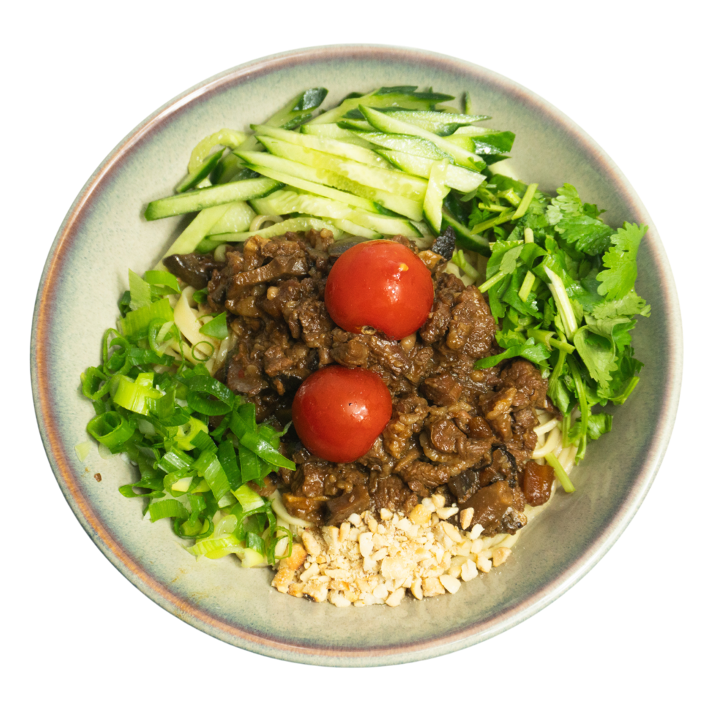 Narrow, hand-pulled noodles in our homemade broth/soup, refined with Sichuan pepper, chili, garlic, fresh coriander and spring onions, rounded off with our homemade aromatic oil.